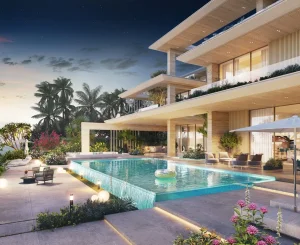 Al Thuraya Islands, Sharjah, is priced at AED 4.1M and offers 5, 6, and 8 BR villas and mansions for sale in Sharjah. This new launch property offers an easy payment plan, and the completion date is Q4 2027.